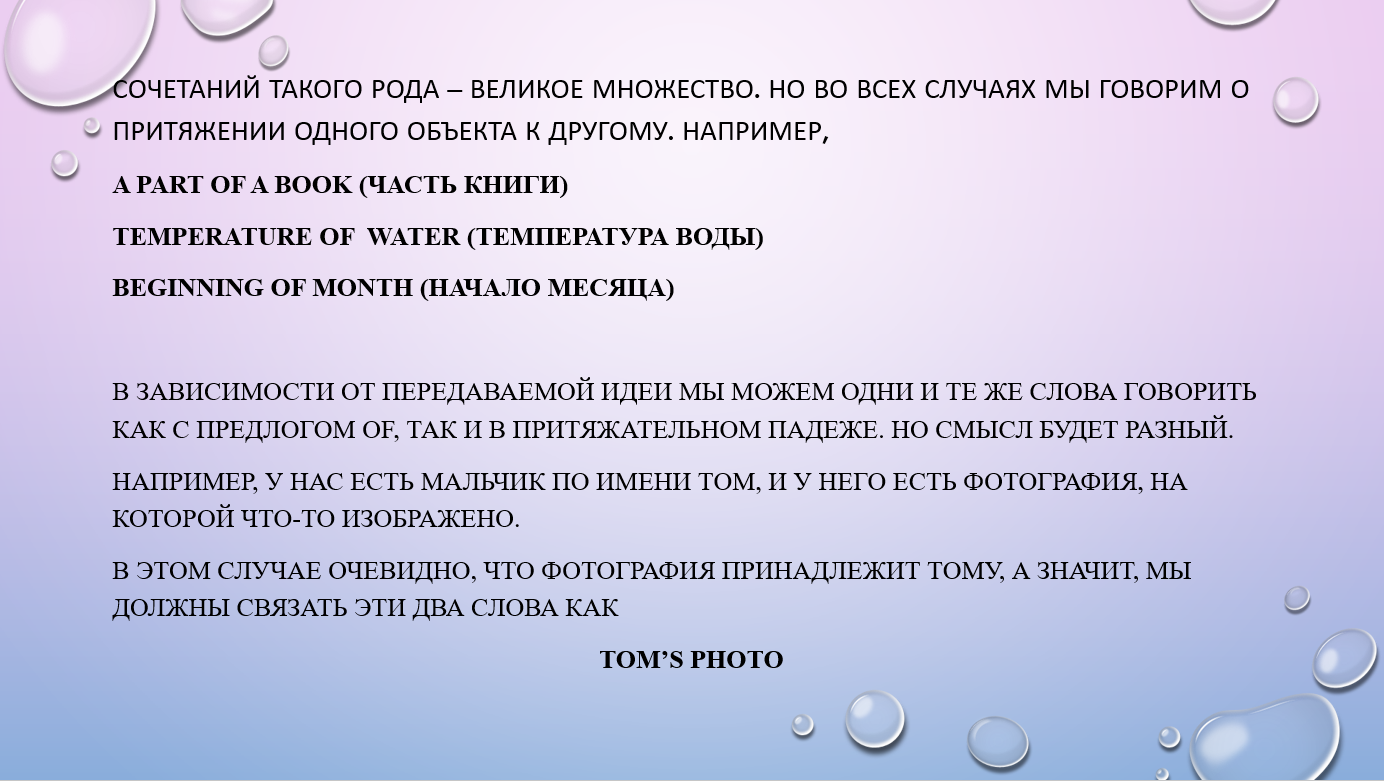 Например, у Тома есть сын, а у сына есть книга. И мы хотим сказать книга сына Тома. По-английски это будет так: