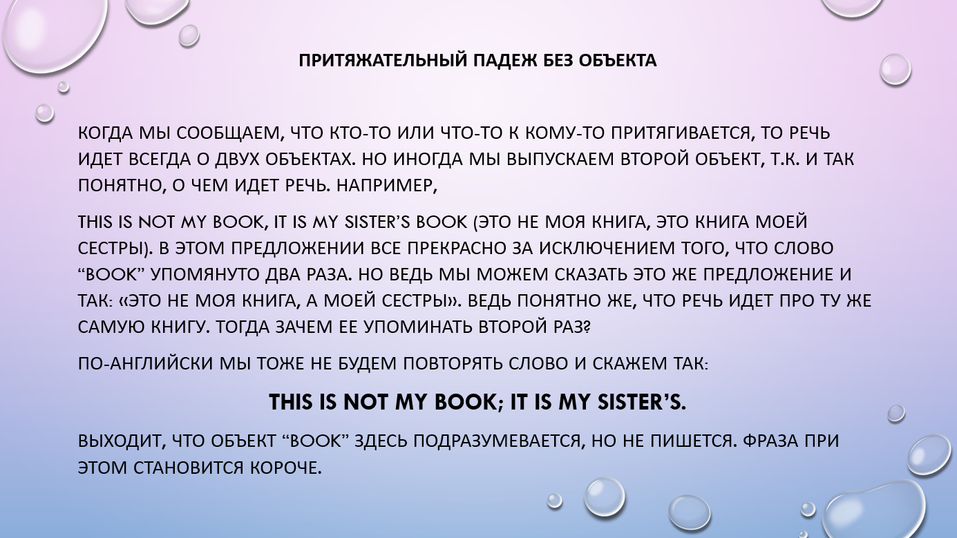 То есть каждый объект мы связываем с предыдущим притяжательной формой. Таких объектов в цепочке может быть сколько угодно, но по факту редко превышает четыре.