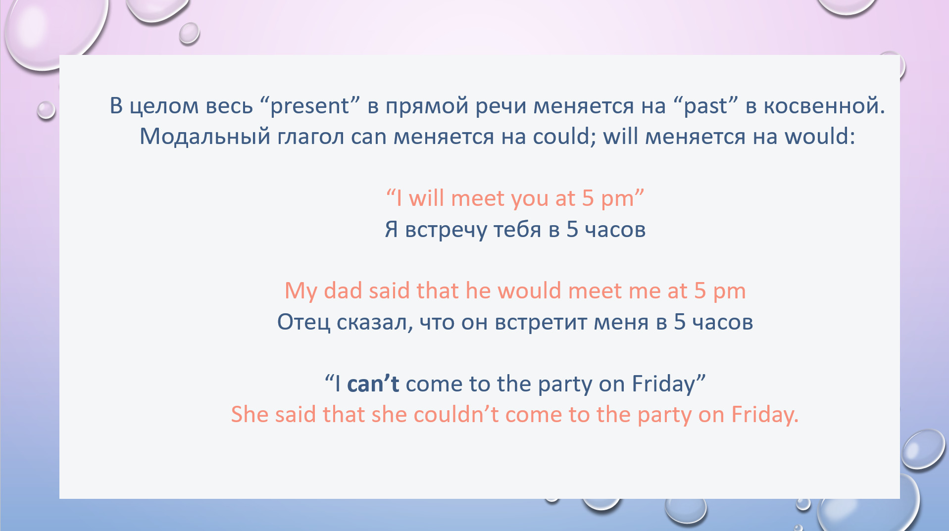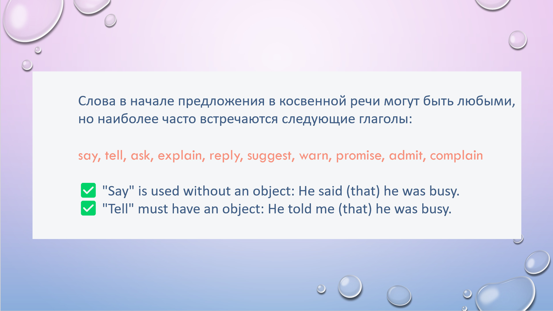 HW task 1. Write the sentence in reported speech