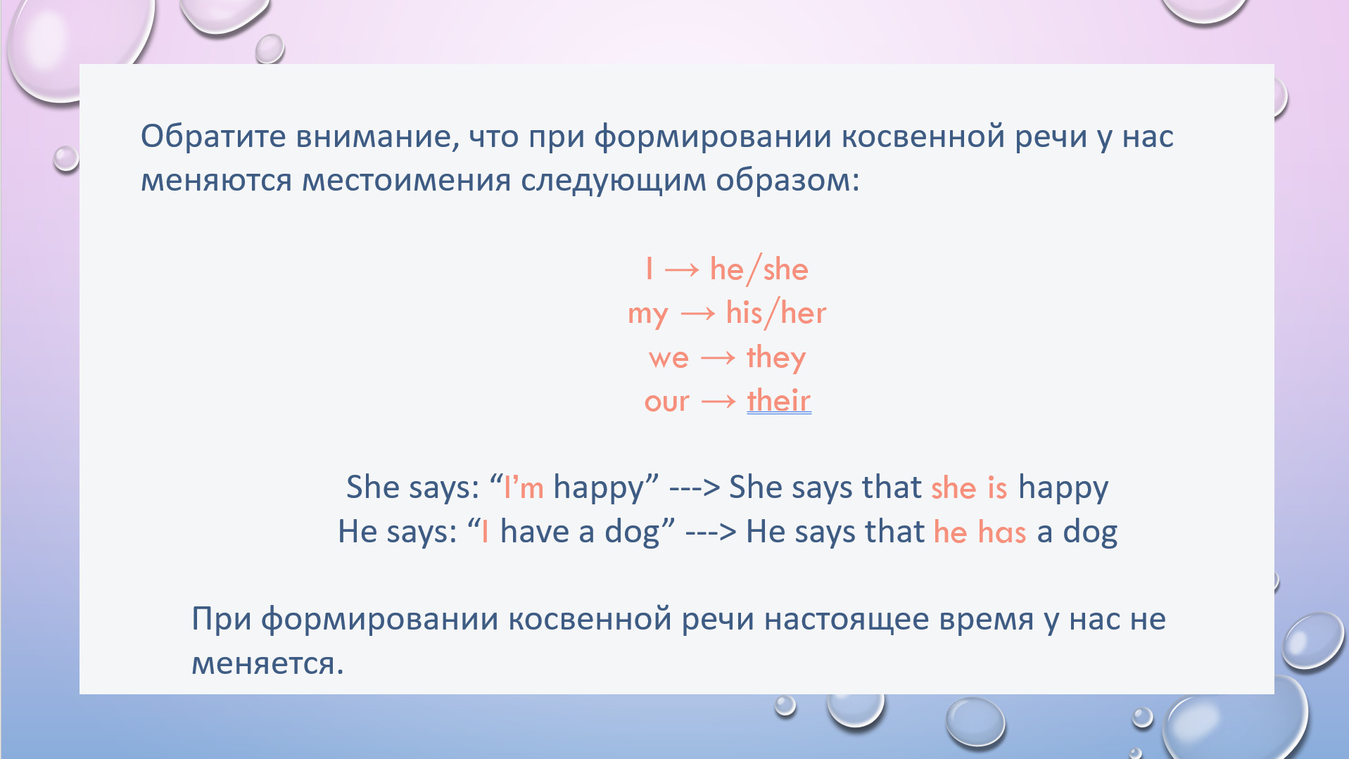 HW task 3. Change personal pronouns in reported speech