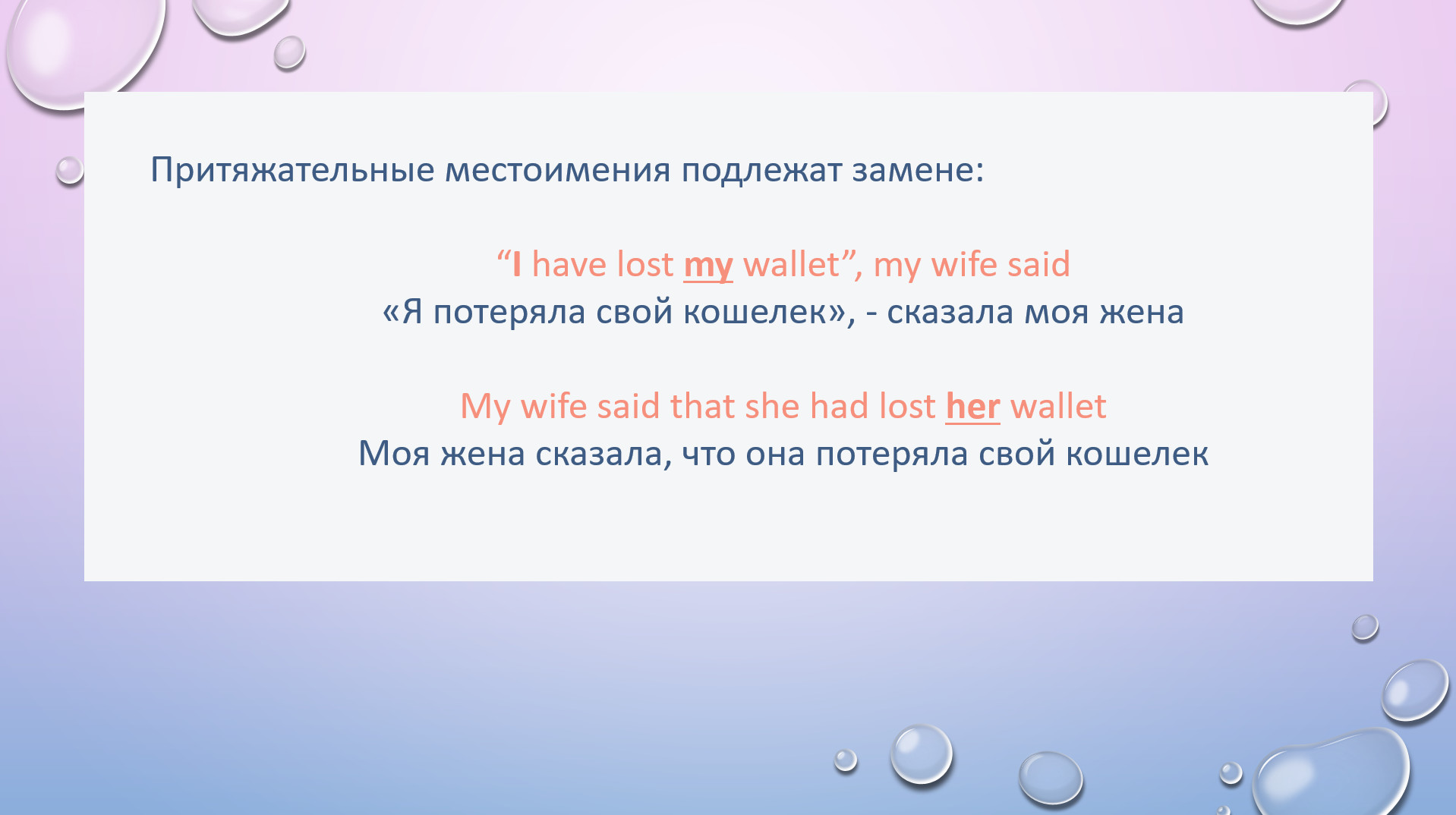 HW task 3. Change personal pronouns in reported speech