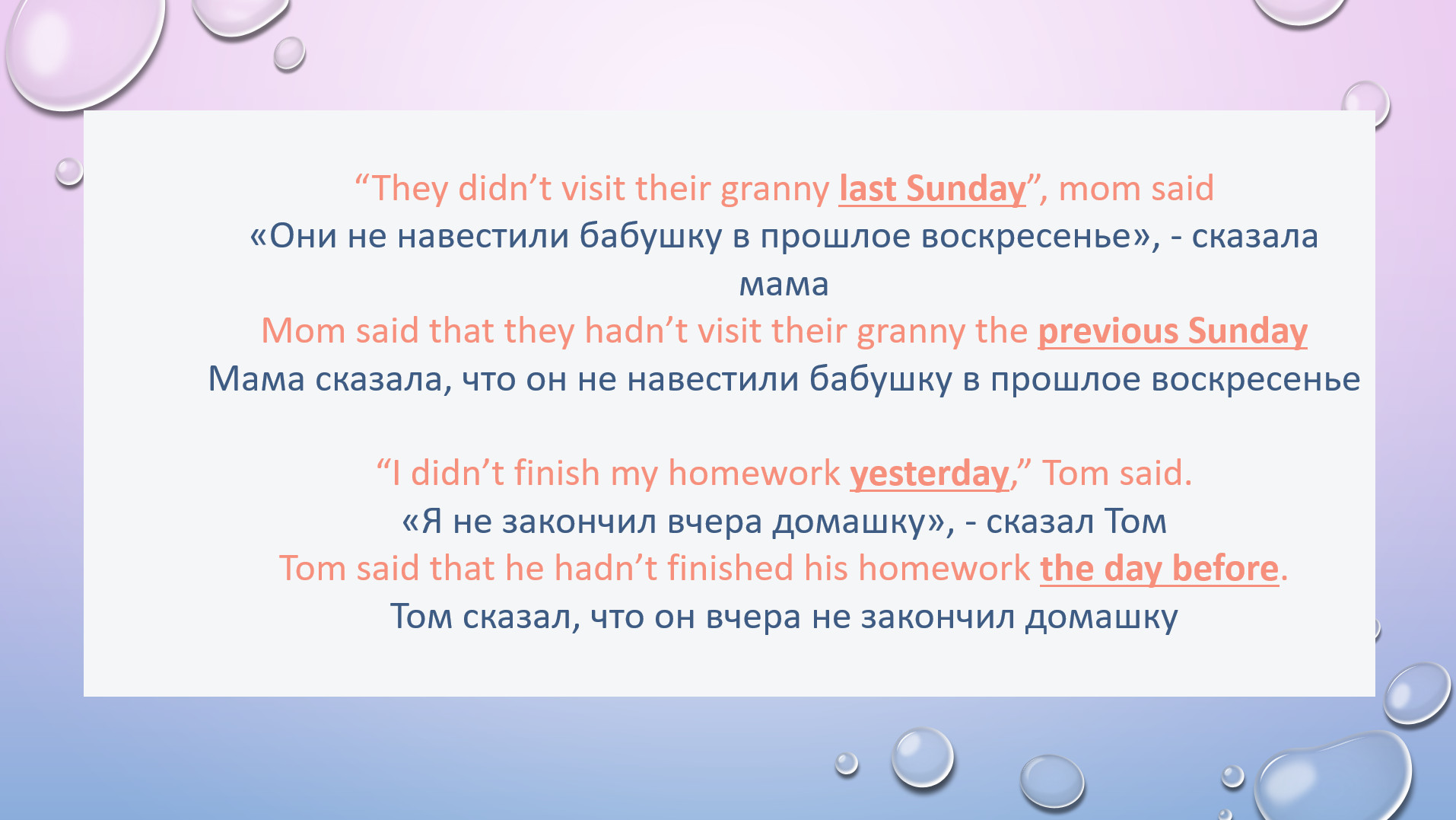 HW task 8. Translate the sentences in reported speech