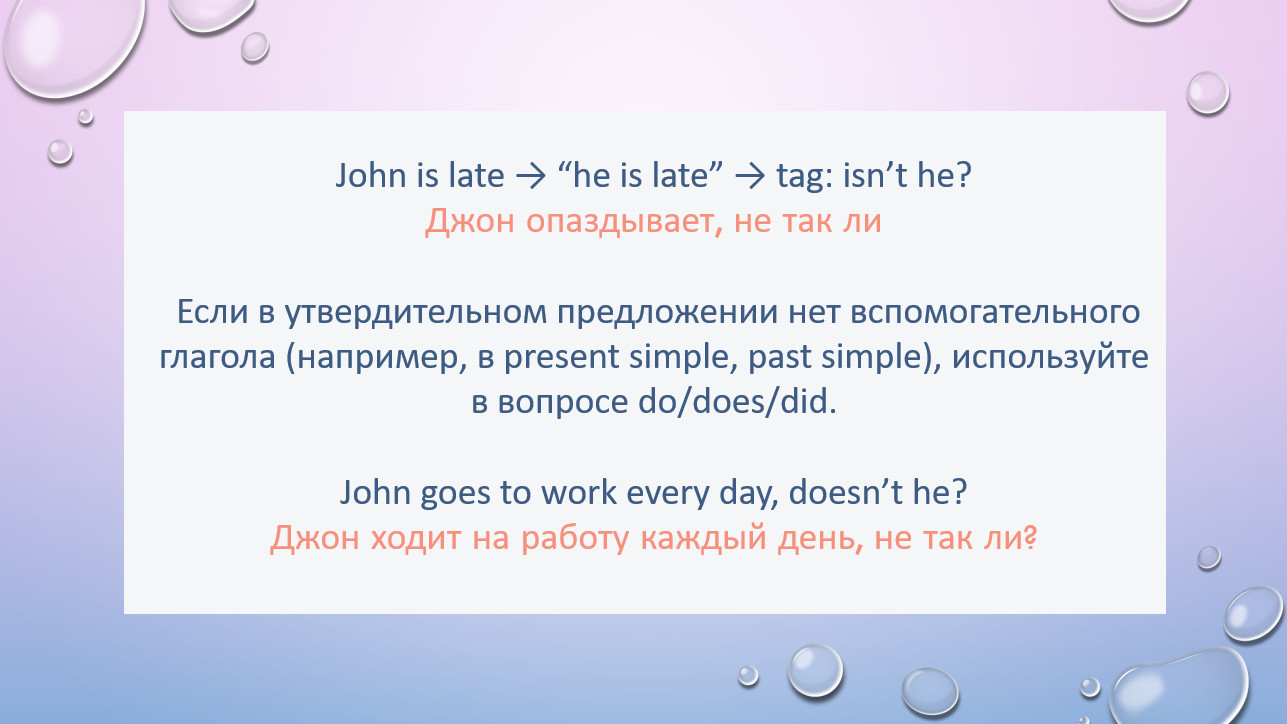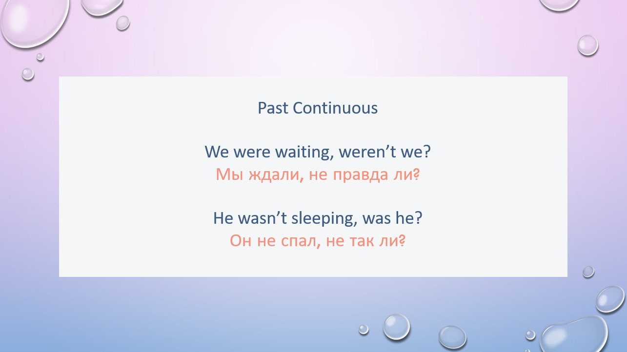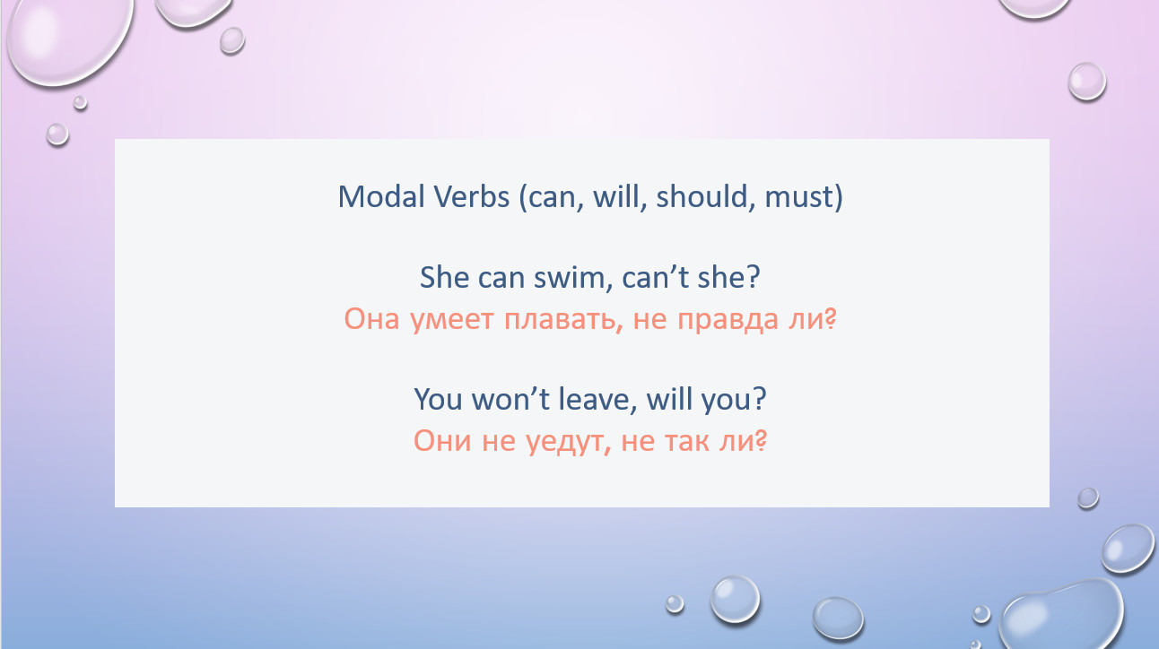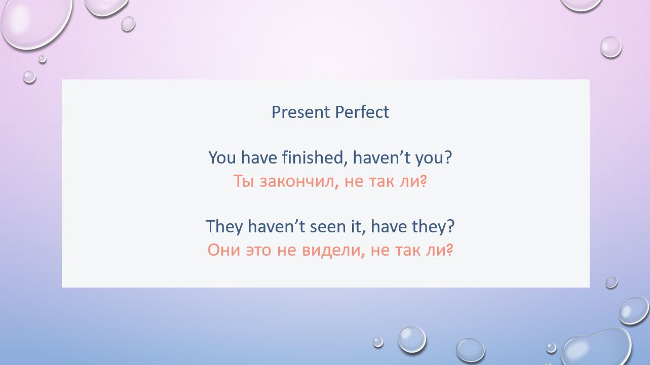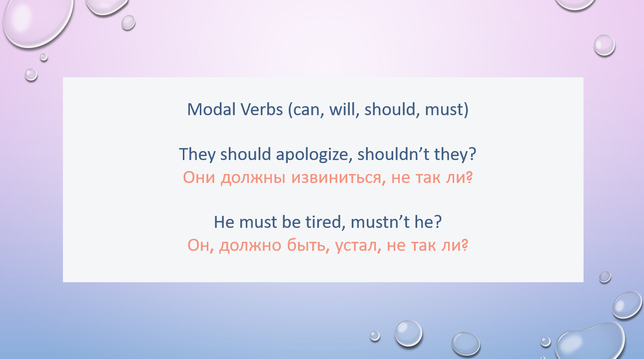HW task 2. Make a tag question for Continuous, Perfect & Modal Verbs