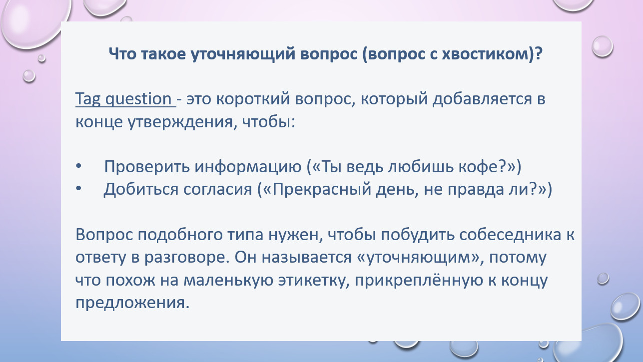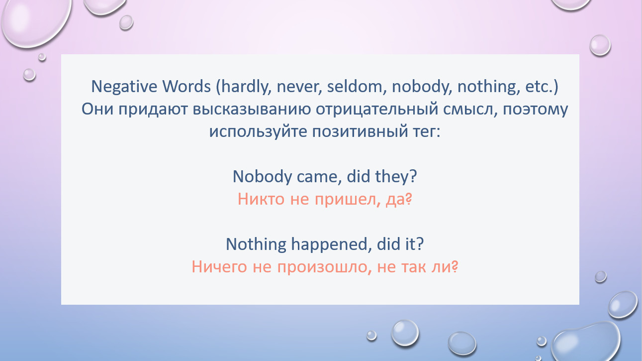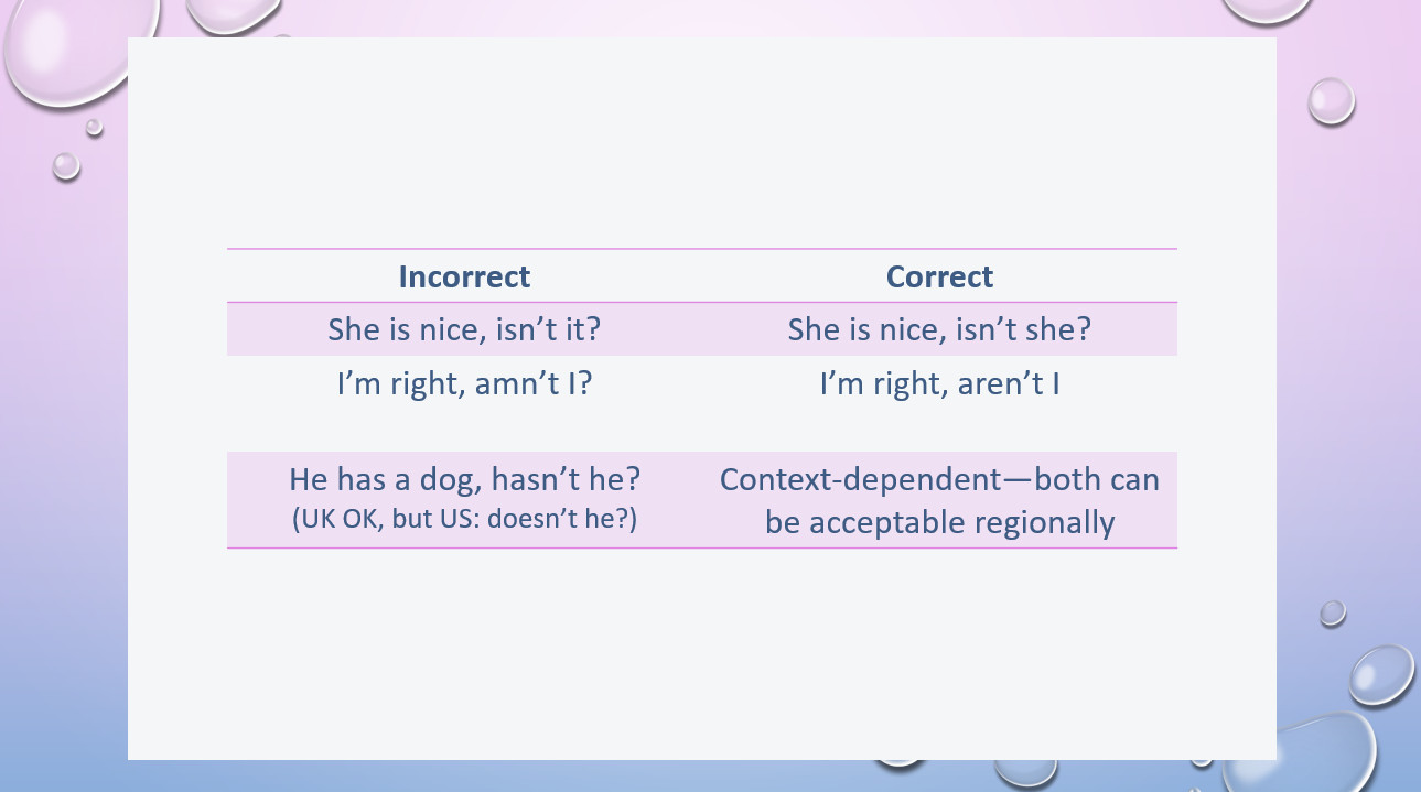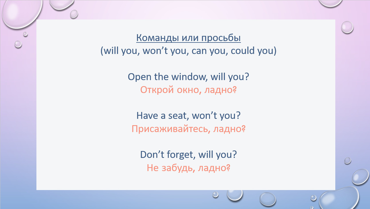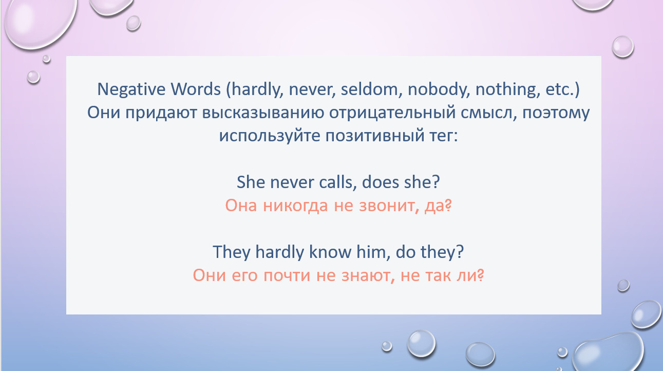 HW task 2. Make a tag question for Continuous, Perfect & Modal Verbs