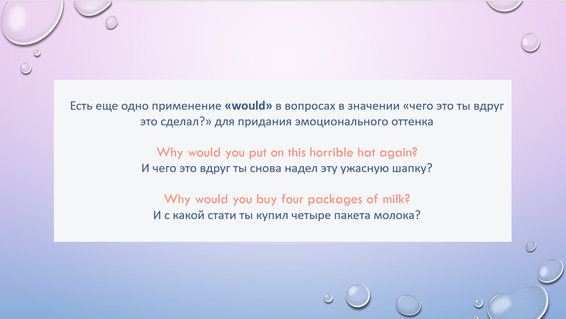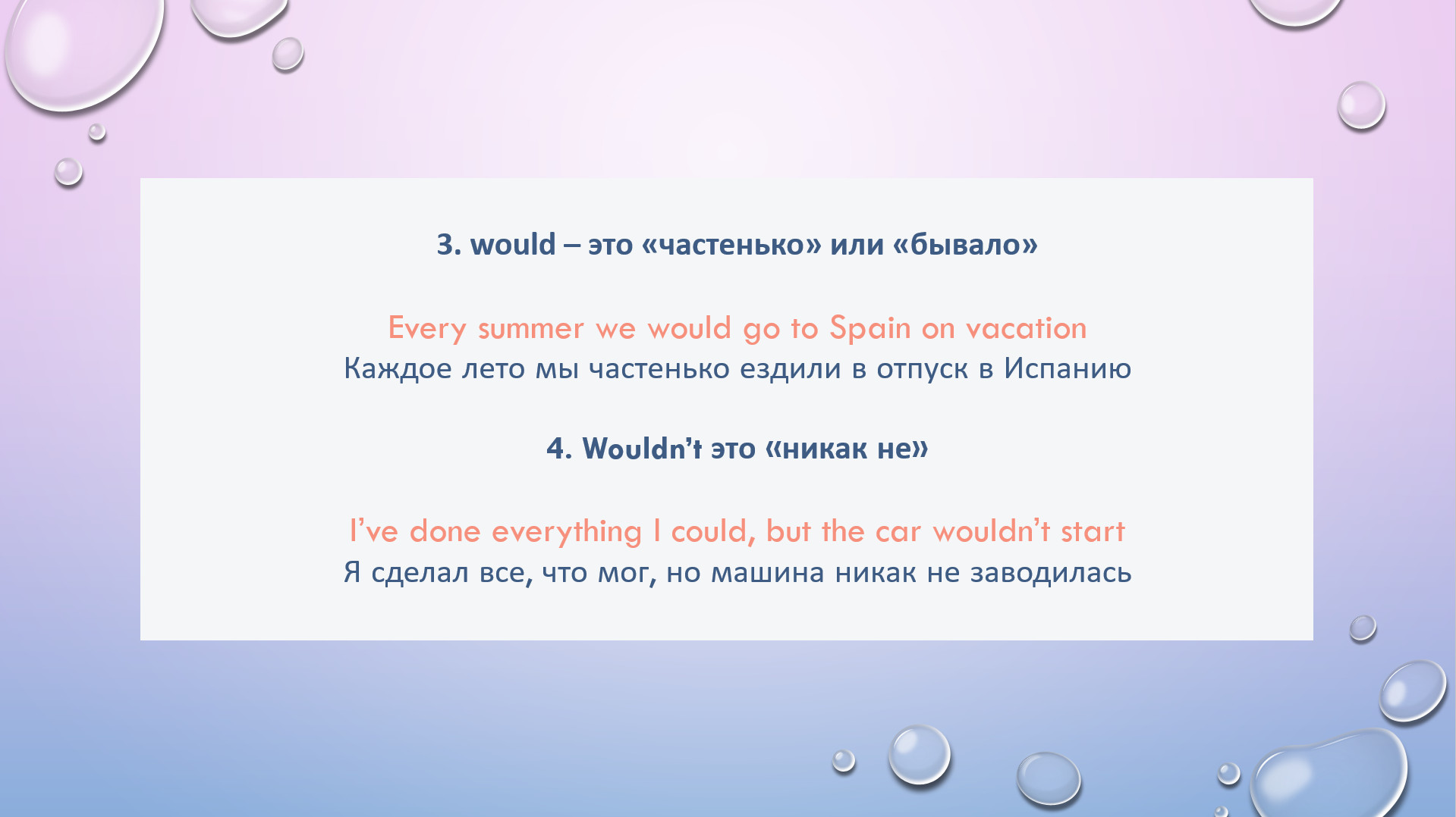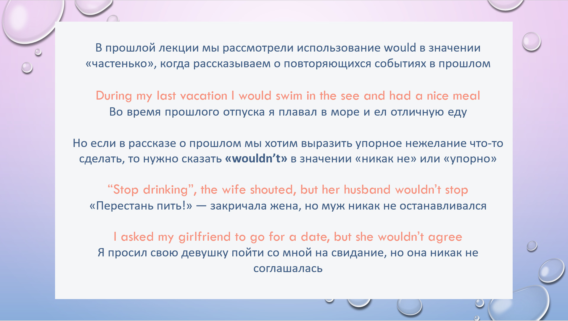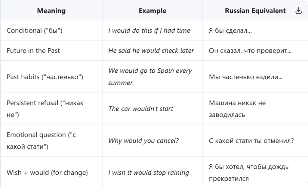 HW task 28. Rewrite using WOULD/WOULDN’T based on the Russian hint