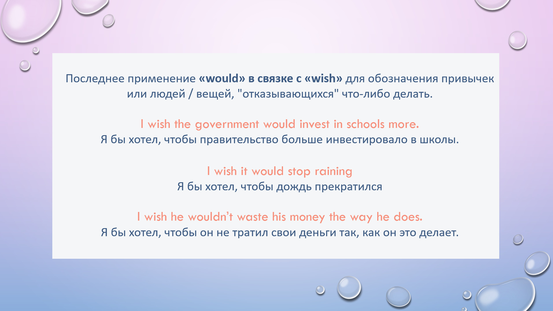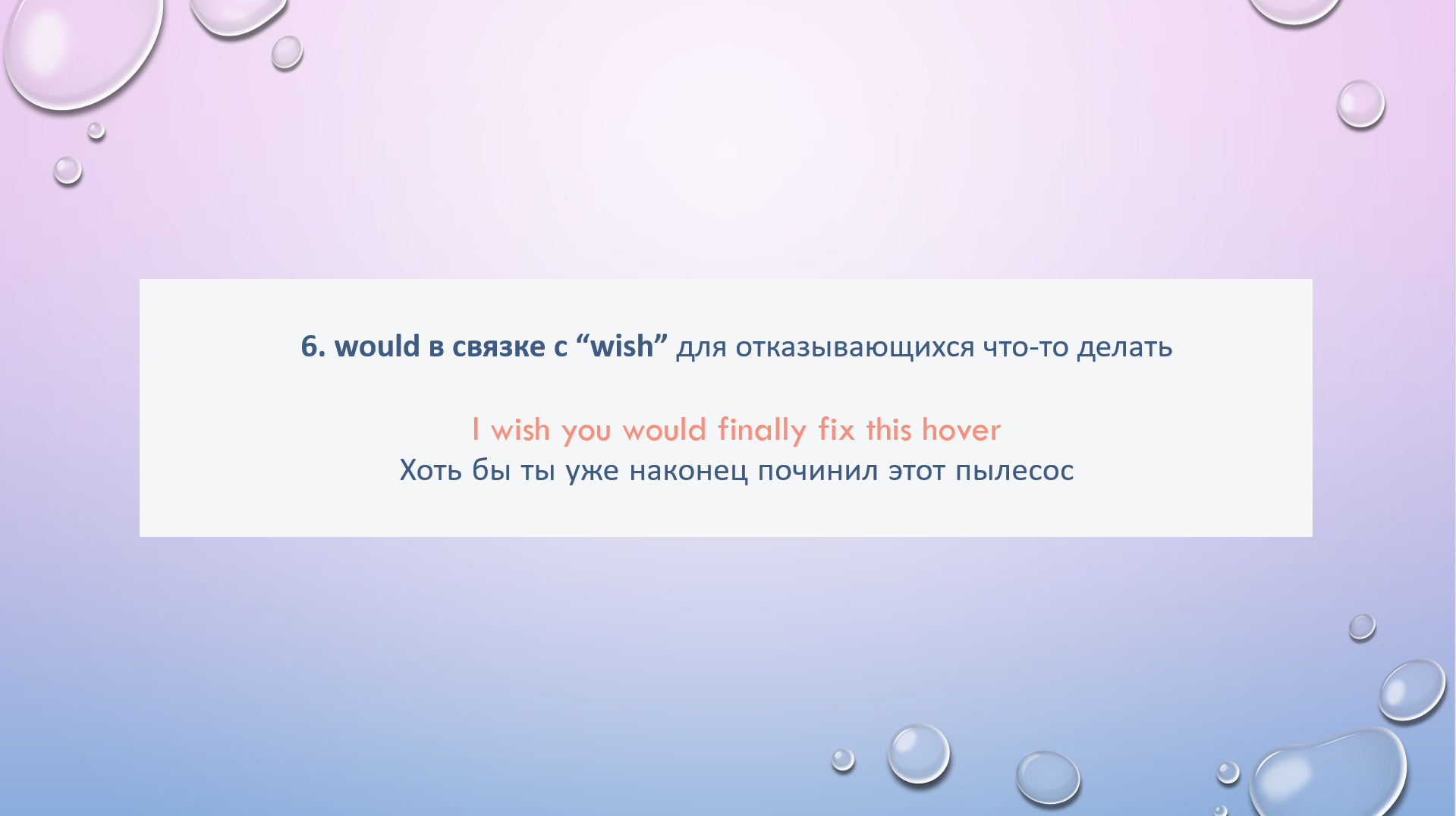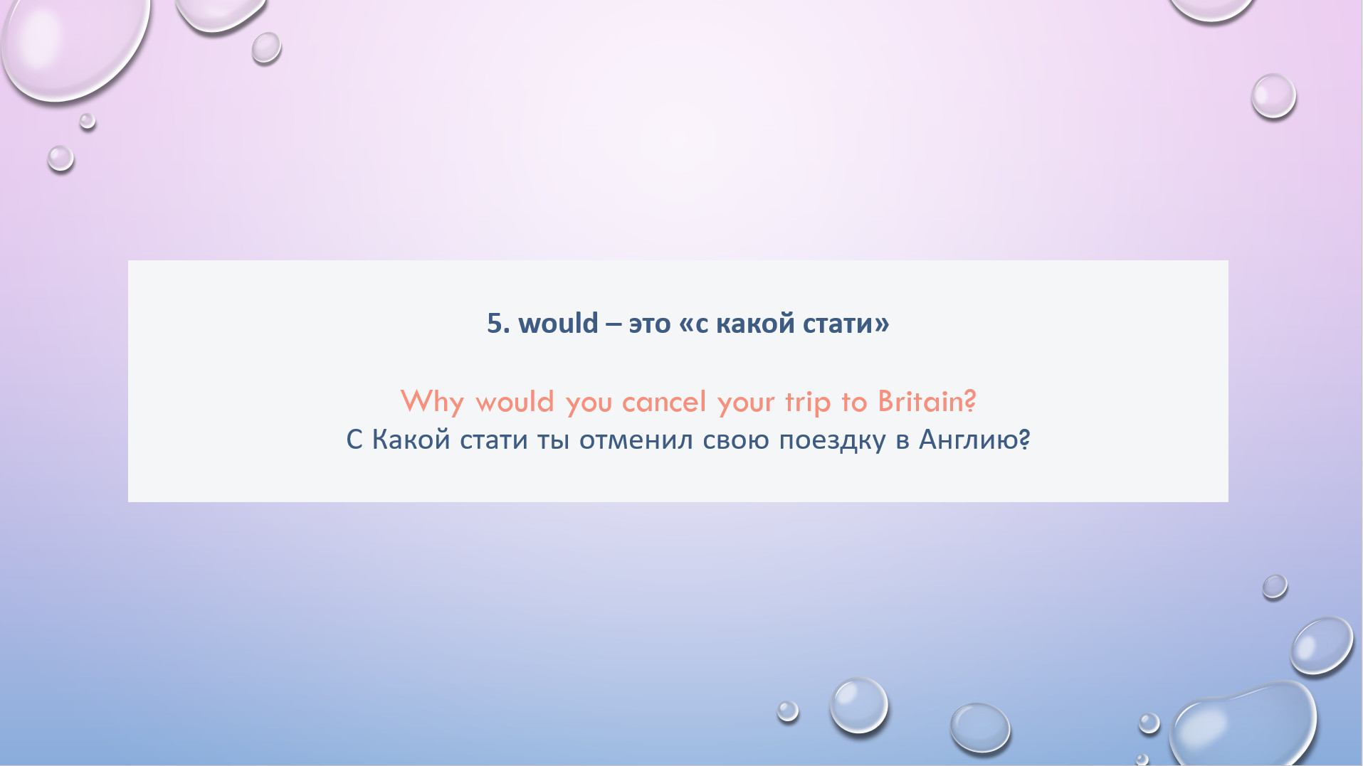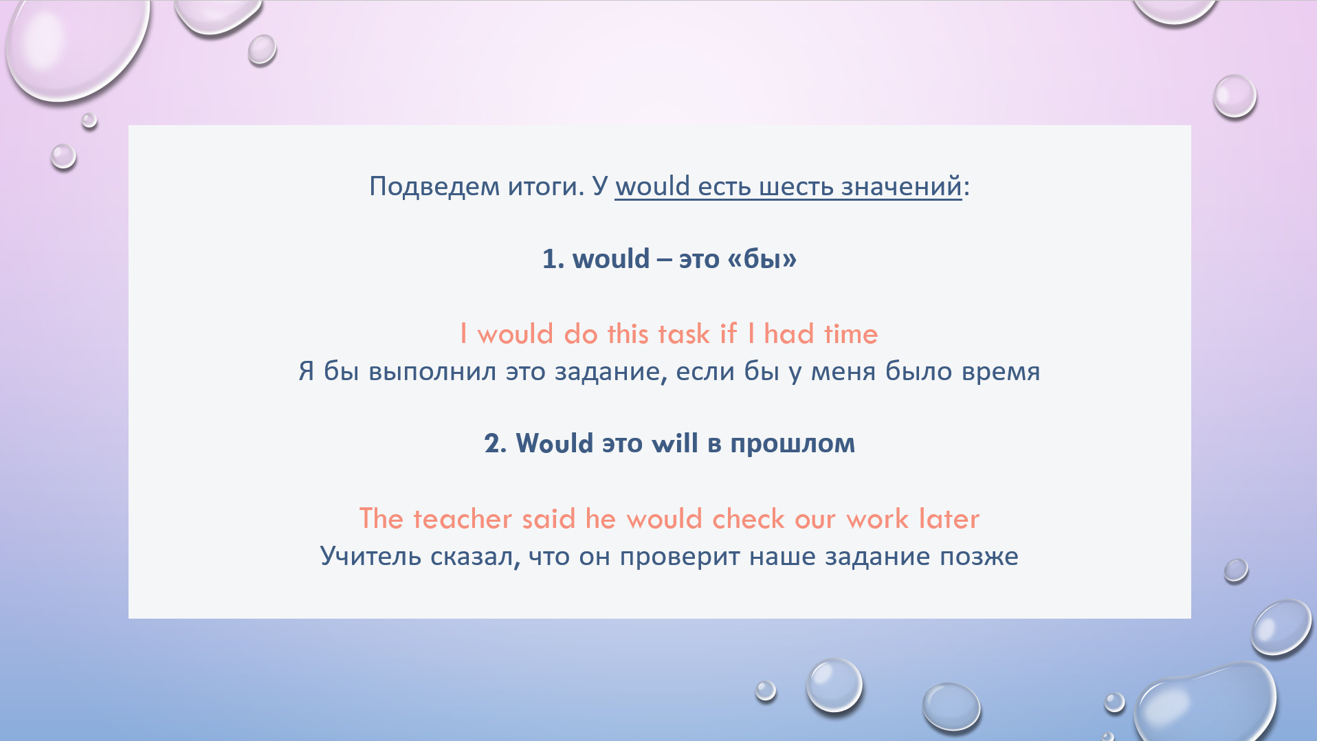 HW task 28. Rewrite using WOULD/WOULDN’T based on the Russian hint