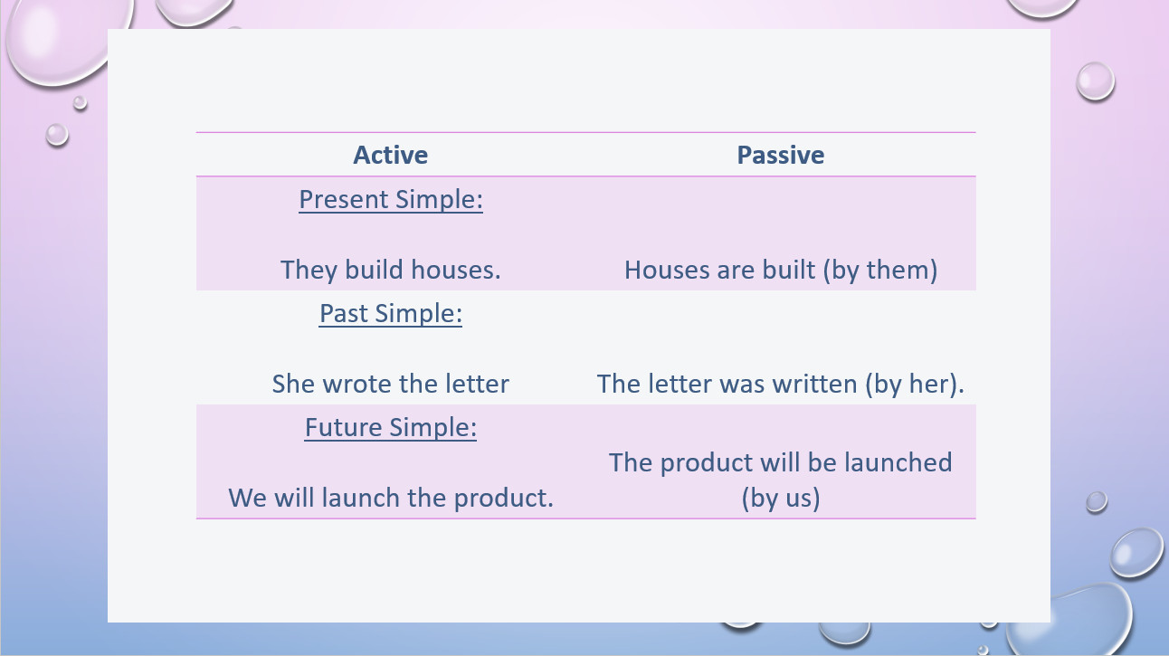 HW task 3. Rewrite each sentence in the passive voice. Keep the same tense (Present, Past, or Future Simple)