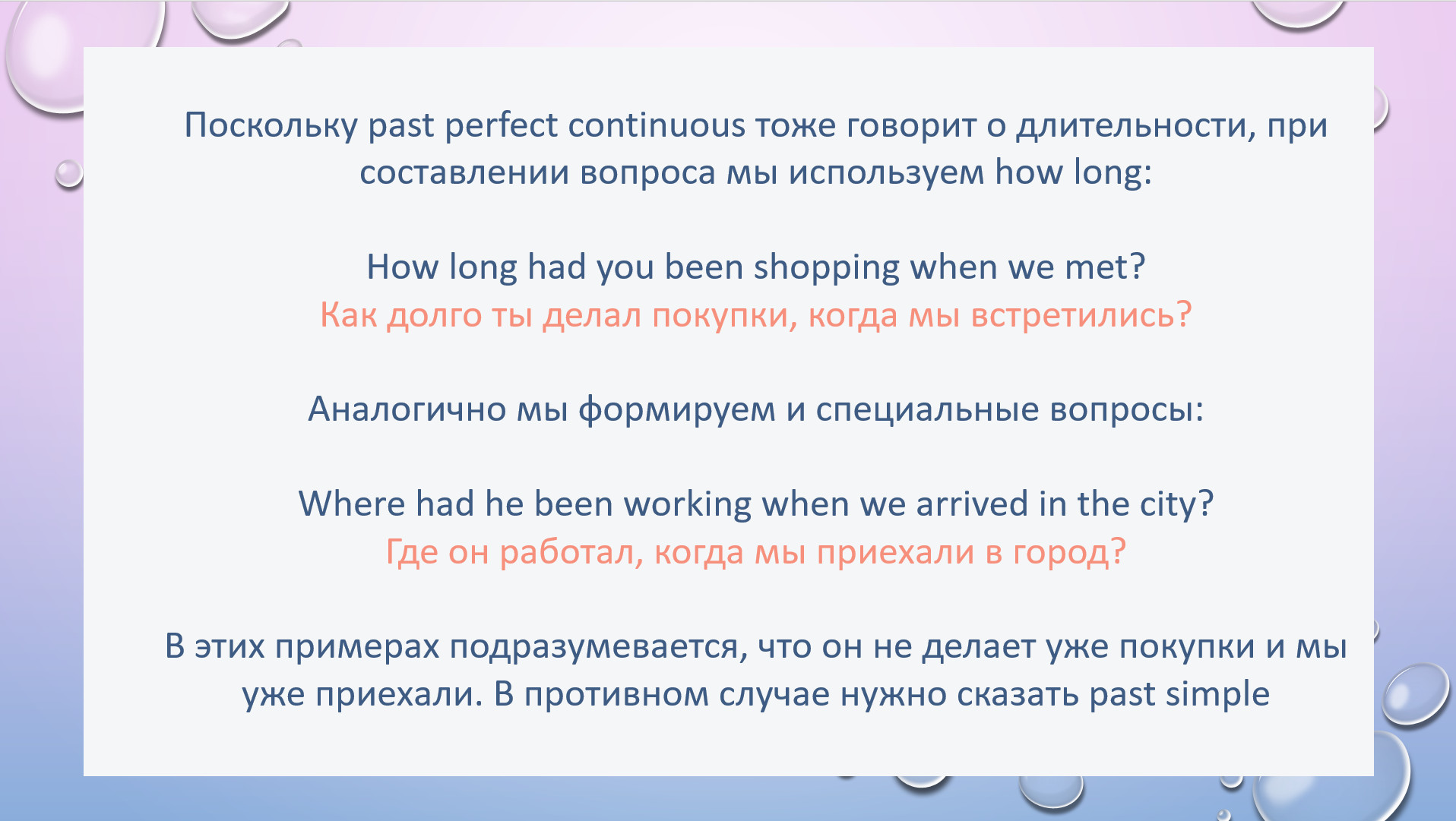 24.9 Ask and answer questions using Past Perfect Continuous to explain what someone had been doing before a key past event