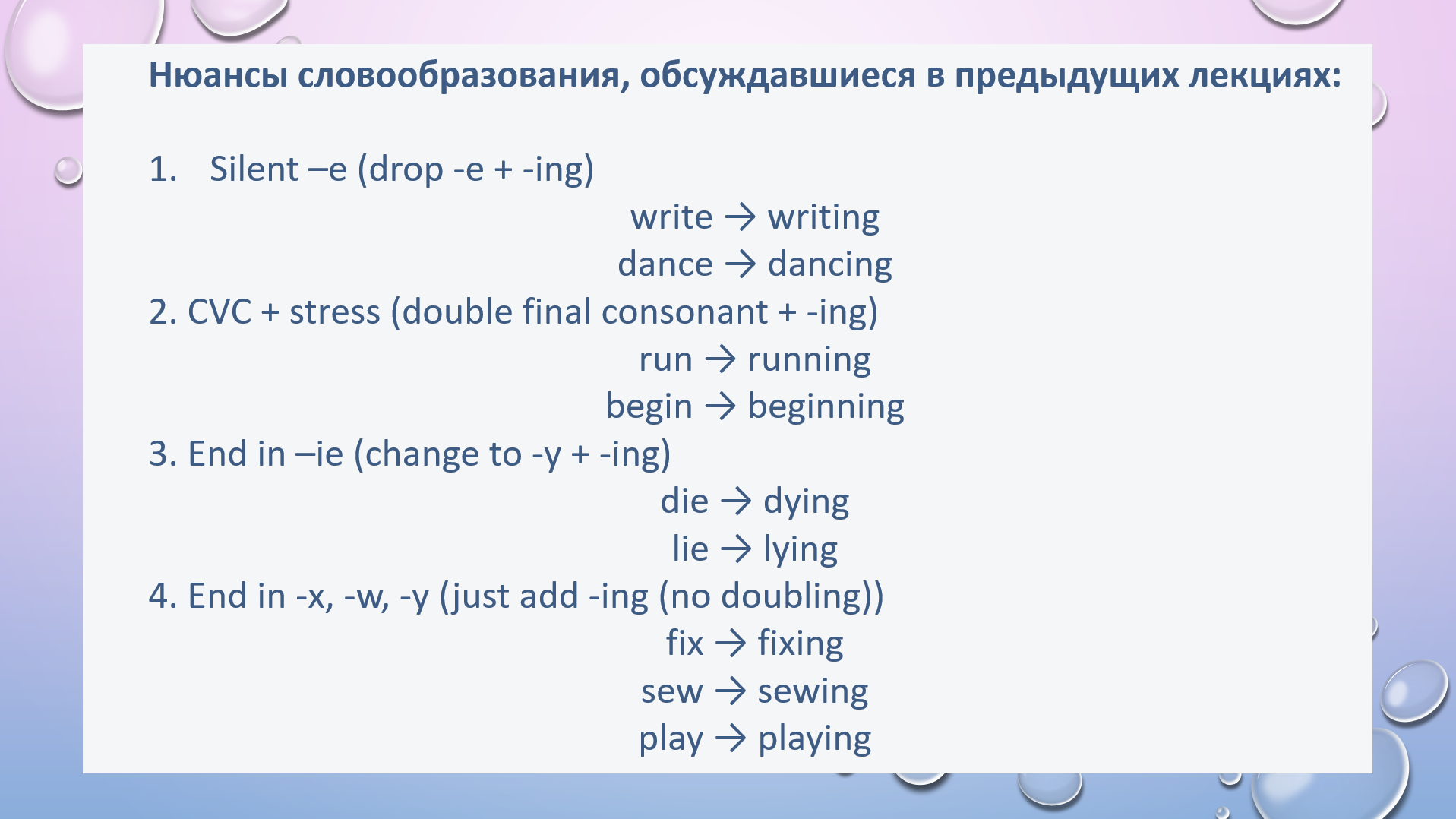 HW task 2. Apply spelling rules for present and past participles