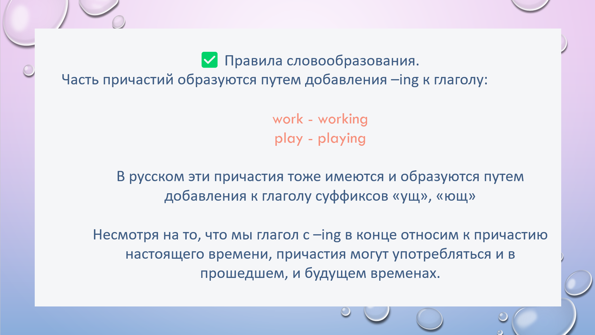 HW task1. Choose correct participle to complete the sentence
