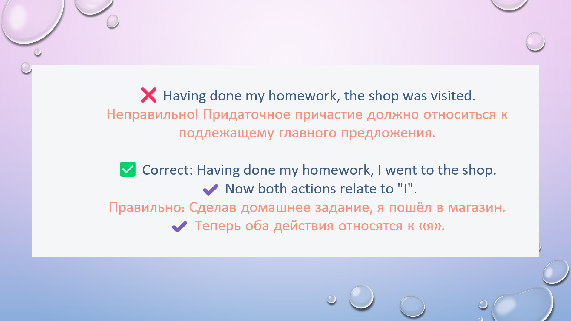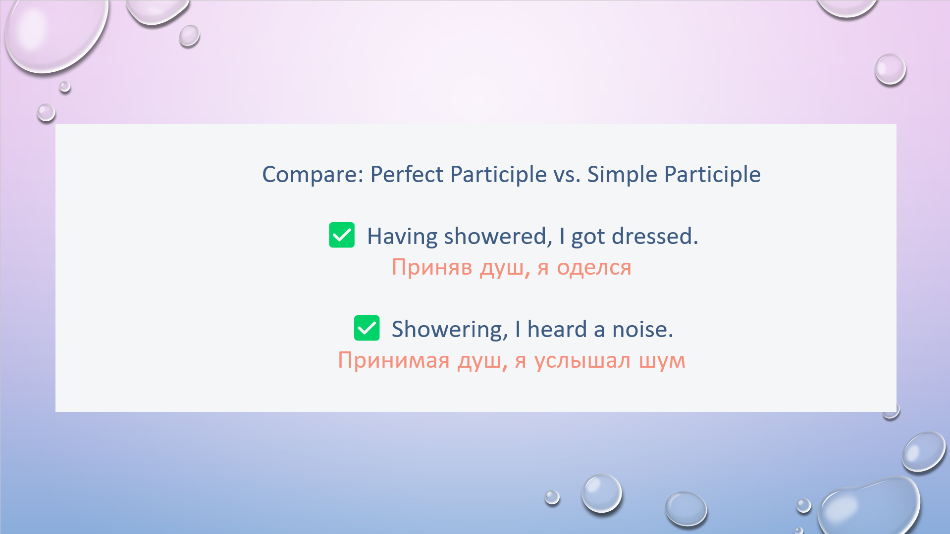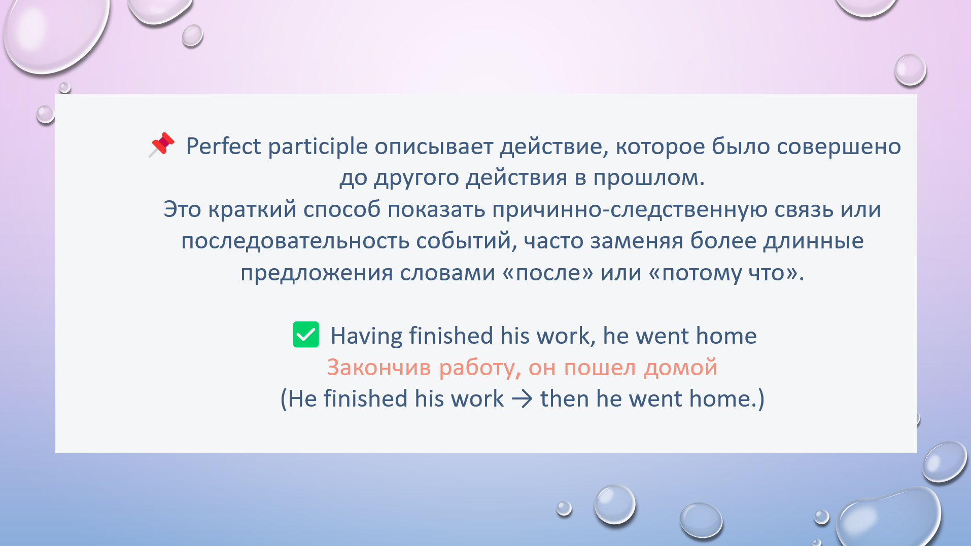 HW task1. Choose correct participle to complete the sentence